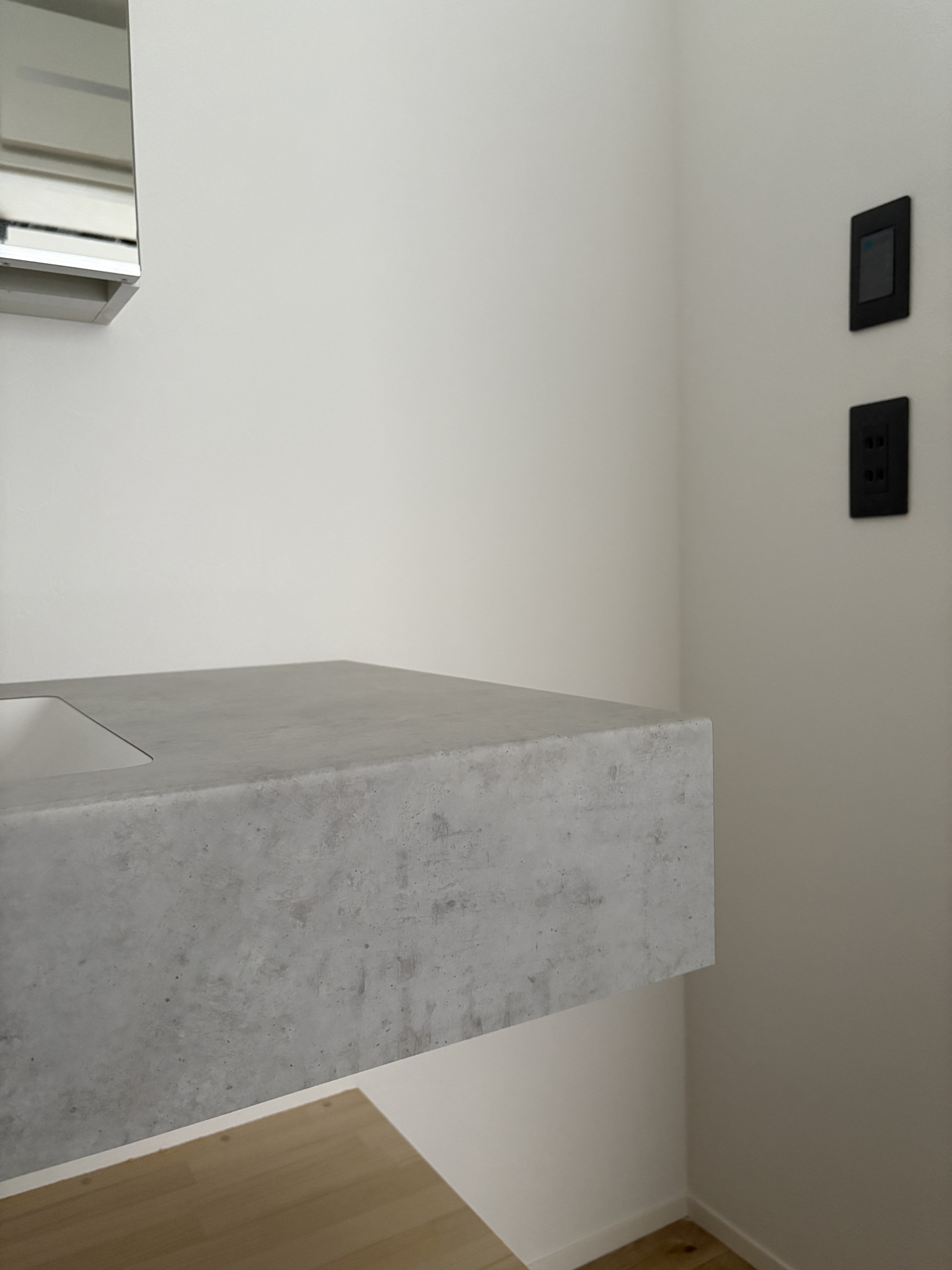 モルタル調のグレー色外壁でまとめたスクエアデザインの住宅が完成しました。